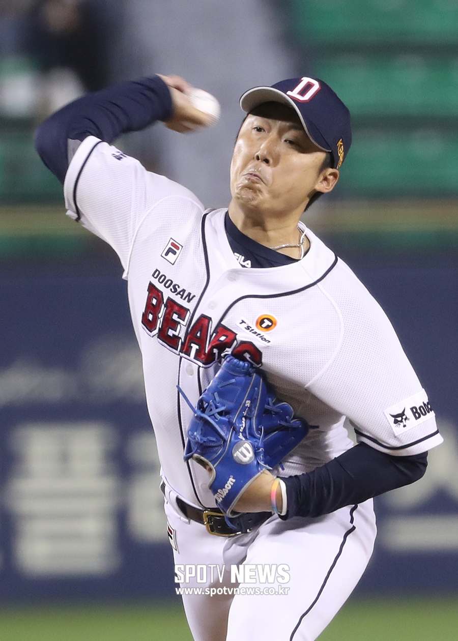 [스포티비뉴스=잠실, 곽혜미 기자] 2019 신한은행 MY CAR KBO리그 두산 베어스와 SK 와이번스의 경기가 17일 오후 서울 잠실야구장에서 열렸다. 8회초 두산 배영수가 역투하고 있다.