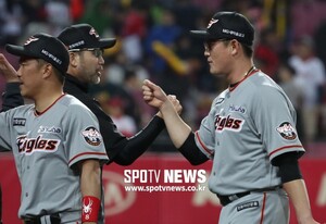 이성열의 가슴팍 치기는 홈런 세리머니다. 두 타구가 아깝게 홈런이 되지 못해 이날은 한용덕 감독의 가슴팍을 치지 못했다. 하지만 타격 침체를 빠져나오기 위해 타순을 대폭 조정하는 등 안간힘을 쓴 한화로서는 단비와 같은 장타였다.