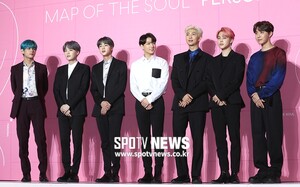 [스포티비뉴스=서울, 곽혜미 기자] 방탄소년단 'MAP OF THE SOUL : PERSONA(맵 오브 더 소울 : 페르소나)' 발매 기념 글로벌 기자 간담회가 17일 오전 서울 중구 동대문디자인플라자에서 열렸다. 방탄소년단이 포즈를 취하고 있다.