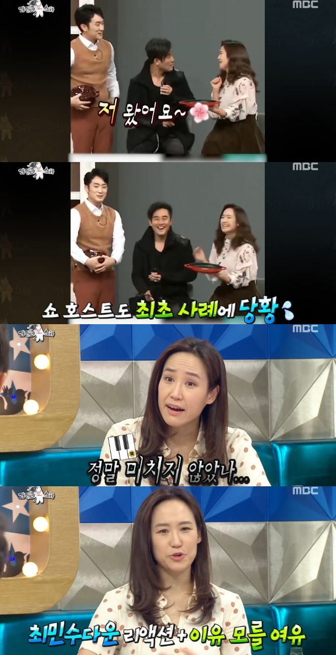 강주은은 "순간 침착한 멘트로 모면을 했는데, 속으로는 온갖 욕이 다 나왔다. 근데 정말 태연하게 앉아서 이유 모를 여유로움으로 웃음을 짓고 있더라. 지금 돌이켜도 나는 땀이 난다"라고 말했다. 그 순간 방송 화면으로 천연덕스럽게 앉아 있는 최민수의 당시 모습이 비춰져 웃음을 더했다.