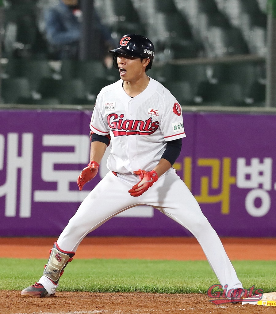그런데 타석에 들어선 4번 타자는 이대호가 아닌 나경민이었다. 나경민은 7회 이대호를 대신해 1루 주자로 투입됐다. 대타로 쓸 수 있는 채태인 카드도 소진한 상태. 나경민이 쳐야 했다.