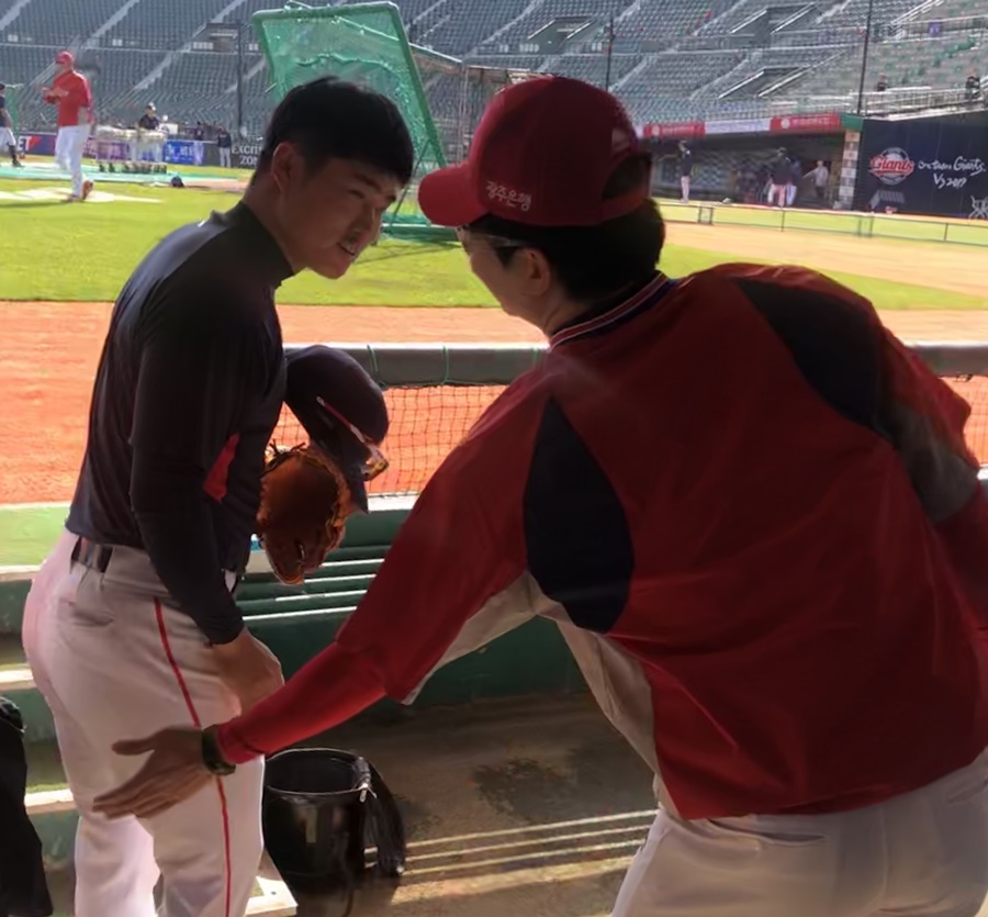 이날 신본기의 사과를 받은 양현종은 그러자 양현종은 "살살 좀 하자"며 "괜찮다"고 신본기의 엉덩이를 툭툭 쳤다.