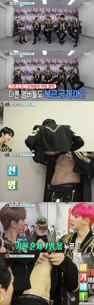 멤버들은 이날 '차세대 짐승돌'로 불리는 만큼, 악어 게임을 통해 현장에서 복근을 공개할 멤버들을 선출했다. 먼저 원호가 열심히 관리한 복근을 깜짝 공개했다. 이후 아이엠이 당첨됐다. 아이엠의 복근 공개 이후 게임에 걸린 기현 역시 복근 공개를 시도했으나 멤버들은 기현을 급히 말렸다. 기현은 귀여운 '아기배'를 공개한 뒤 웃음으로 수습해 폭소를 자아냈다.