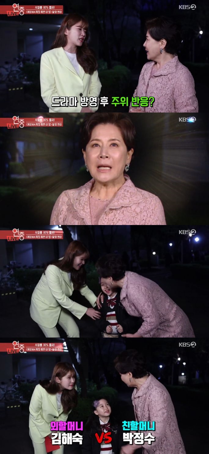 19일 방송된 KBS 2TV 연예정보프로그램 '연예가 중계'에서는 배우 김해숙과 박정수가 드라마에서 각각 친정 엄마, 시어머니 연기를 하는 것과 관련해 생각을 전했다.