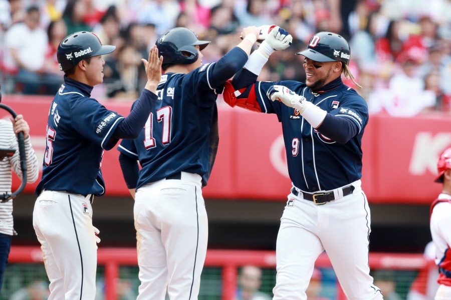 2사 1루에서 박건우가 몸에 맞는 볼로 출루했고 김재환이 볼넷을 얻어 낸 뒤 오재일도 볼넷을 얻어 밀어내기 점수를 올렸다.