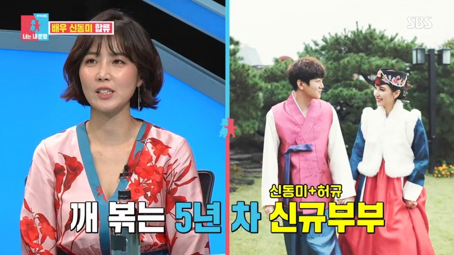 신동미 허규 부부는 뮤지컬 '파라다이스 티켓'으로 처음 만나게 되어 친구에서 연인관계로 발전, 결혼하게 된 동갑내기 부부. 신규부부는 첫 등장부터 투닥거리며 친구 같은 부부 사이를 자랑했다. 특히 신동미는 "평생 이렇게 친구처럼 좋은 동반자를 만난 것 같은 느낌이다”라며 허규에 대한 애정을 드러냈다. 또한 이날 신규부부는 5년째 시부모님과 함께 하고 있는 보금자리를 공개해 이목을 집중시켰다.