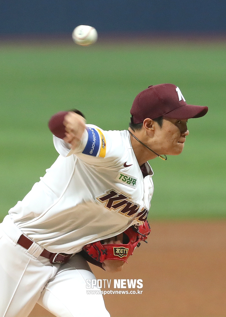 [스포티비뉴스=고척, 곽혜미 기자] 2019 신한은행 MY CAR KBO리그 키움 히어로즈와 두산 베어스의 경기가 23일 오후 서울 구로구 고척스카이돔에서 열렸다. 키움 선발 안우진이 역투하고 있다.