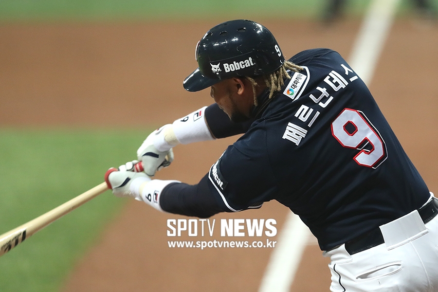 [스포티비뉴스=고척, 곽혜미 기자] 2019 신한은행 MY CAR KBO리그 키움 히어로즈와 두산 베어스의 경기가 23일 오후 서울 구로구 고척스카이돔에서 열렸다. 1회초 1사 타석에 들어선 두산 페르난데스가 안타를 날리고 있다.