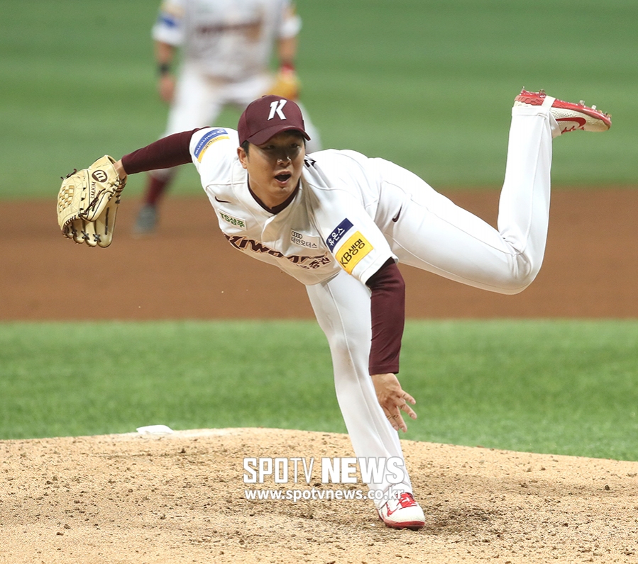 [스포티비뉴스=고척, 곽혜미 기자] 2019 신한은행 MY CAR KBO리그 키움 히어로즈와 두산 베어스의 경기가 23일 오후 서울 구로구 고척스카이돔에서 열렸다. 7회초 키움 김성민이 역투하고 있다.