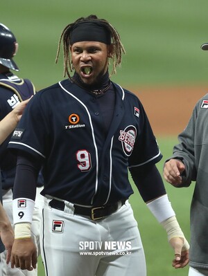 [스포티비뉴스=고척, 곽혜미 기자] 2019 신한은행 MY CAR KBO리그 키움 히어로즈와 두산 베어스의 경기가 23일 오후 서울 구로구 고척스카이돔에서 열렸다. 9-3으로 승리한 두산. 4안타 주역 페르난데스.