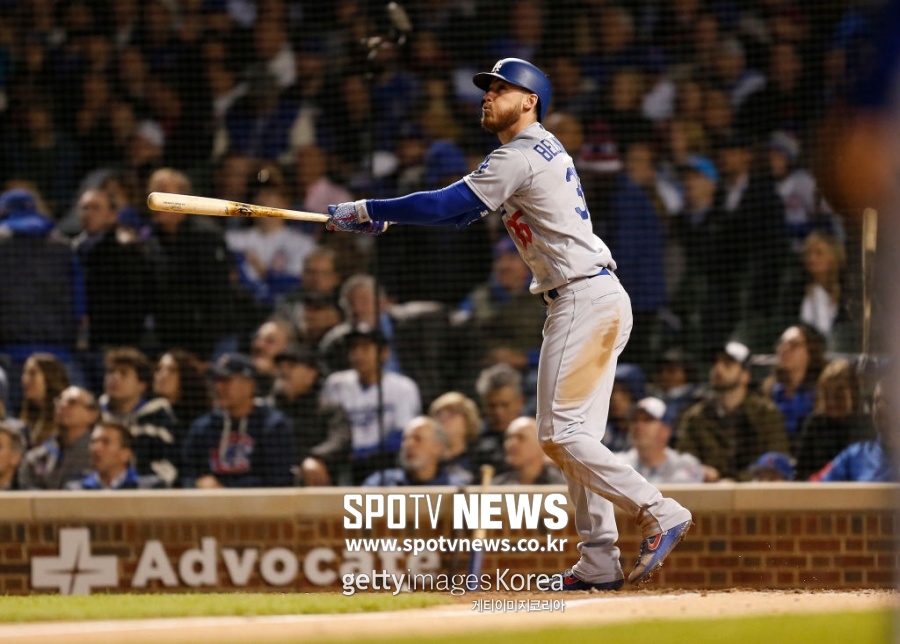 [스포티비뉴스=LA(미 캘리포니아주), 양지웅 통신원] LA 다저스 코디 벨린저가 시즌 12호 투런 홈런을 쳤으나 3점홈런 두 개를 친 시카고 컵스를 넘지 못했다.