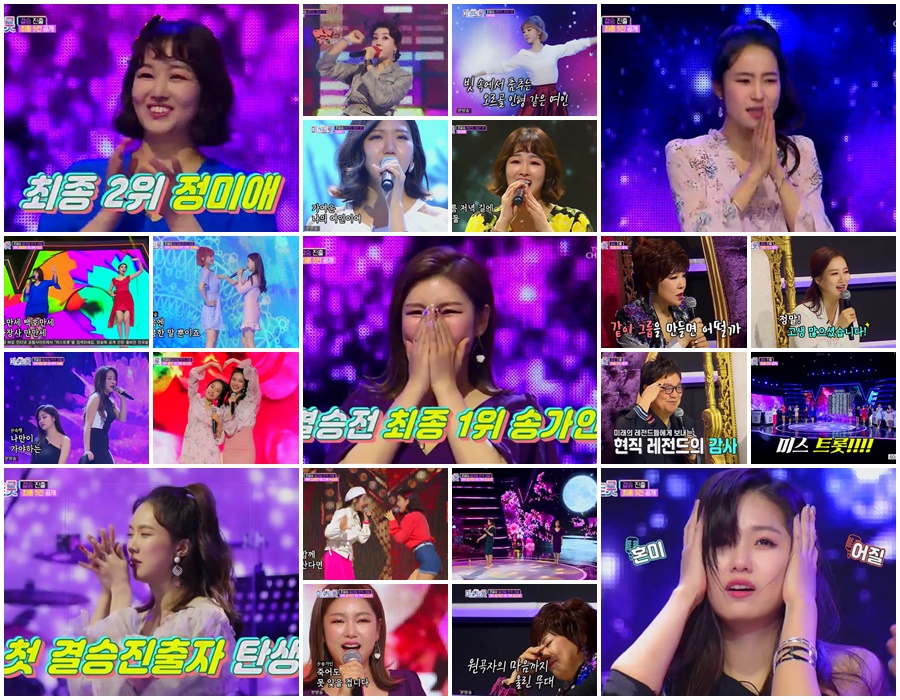 이날 방송에서는 뜨거운 '준결승전 경합'의 1라운드-2라운드가 모두 치러졌고, 마스터들과 관객심사단 그리고 온라인 투표 수치가 종합된 끝에 1위 송가인-2위 정미애-3위 홍자-4위 김나희-5위 정다경이 TOP5로 발표되면서 현장에는 우레와 같은 박수와 함성이 쏟아졌다.
