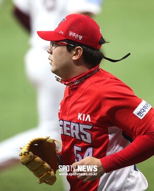[스포티비뉴스=고척, 곽혜미 기자] 2019 신한은행 MY CAR KBO리그 키움 히어로즈와 KIA 타이거즈의 경기가 26일 오후 서울 구로구 고척스카이돔에서 열렸다. 1회말 이닝을 종료한 KIA 선발 양현종이 더그아웃으로 향하고 있다.