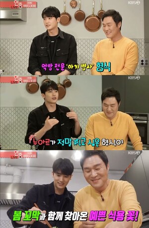 앞서 '아기병사'의 '군대 먹방'으로 주목받은 바 있는 박형식은 "음식을 잘 하느냐"는 질문에 "먹는 것만 잘한다"며 불안해 했다. 그는 "그래도 열심히 씻고 왔다"라며 청결을 과시해 웃음을 자아냈다.