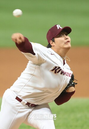 [스포티비뉴스=고척, 곽혜미 기자] 2019 신한은행 MY CAR KBO리그 키움 히어로즈와 KIA 타이거즈의 경기가 26일 오후 서울 구로구 고척스카이돔에서 열렸다. 9회초 키움 조상우가 역투하고 있다.