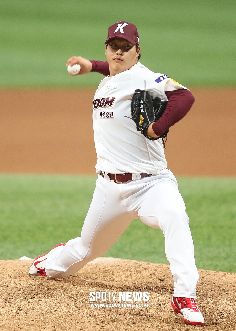 [스포티비뉴스=고척, 곽혜미 기자] 2019 신한은행 MY CAR KBO리그 키움 히어로즈와 KIA 타이거즈의 경기가 26일 오후 서울 구로구 고척스카이돔에서 열렸다. 9회초 키움 조상우가 역투하고 있다.