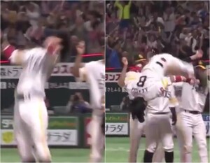 소프트뱅크 호크스는 25일 일본 후쿠오카 야후오쿠돔에서 열린 오릭스 버팔로즈와 경기에서 0-0으로 맞선 연장 10회 아카시 겐지의 끝내기 3점 홈런으로 3-0 승리를 거뒀다. 아카시는 3루를 밟고 홈에 들어오는 과정에서 미국에서는 볼 수 없을 화려한 세리머니를 했다.