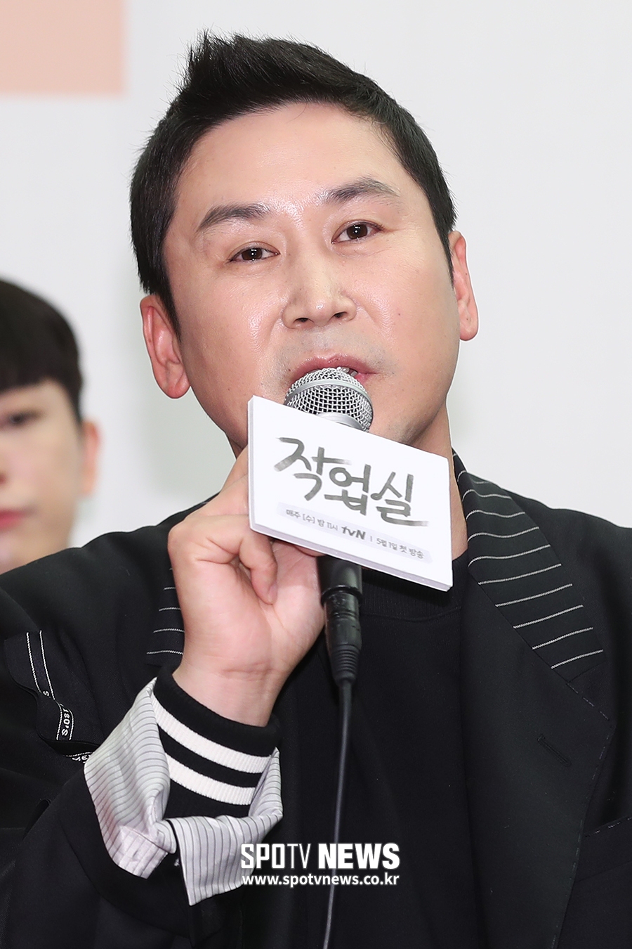 29일 오후 서울 상암동 스탠포드호텔에서 tvN '작업실' 제작발표회가 열린 가운데 MC인 신동엽은 "장재인이 얼마나 위대하고 대단한지 느꼈다"고 너스레를 떨었다.