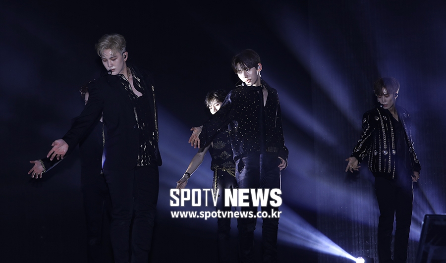 [스포티비뉴스=서울, 곽혜미 기자] 보이그룹 뉴이스트의 여섯 번째 미니 앨범 'Happily Ever After(해필리 에버 애프터)' 발매 기념 쇼케이스가 29일 오후 서울 용산구 한남동 블루스퀘어 아이마켓홀에서 열렸다. 뉴이스트가 무대를 펼치고 있다.