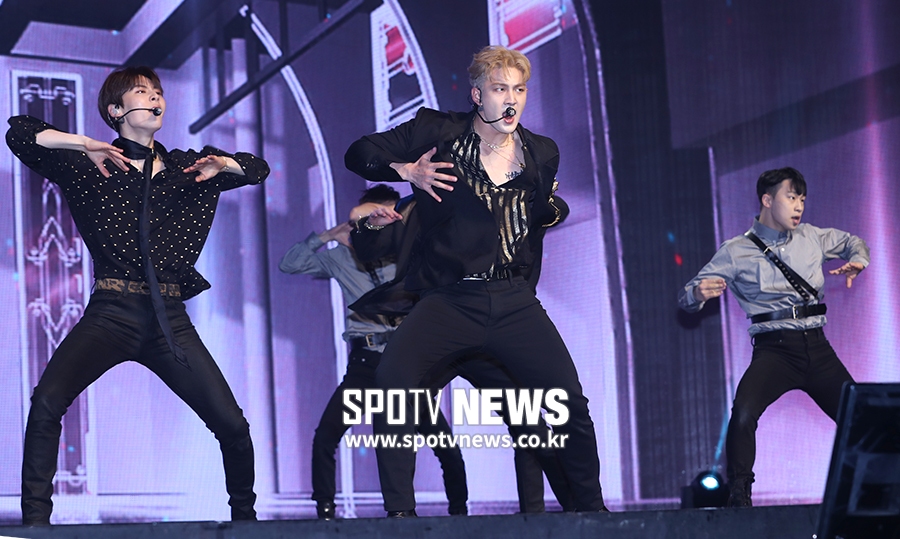 [스포티비뉴스=서울, 곽혜미 기자] 보이그룹 뉴이스트의 여섯 번째 미니 앨범 'Happily Ever After(해필리 에버 애프터)' 발매 기념 쇼케이스가 29일 오후 서울 용산구 한남동 블루스퀘어 아이마켓홀에서 열렸다. 뉴이스트가 무대를 펼치고 있다.