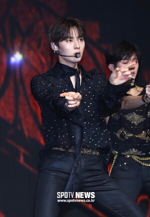 [스포티비뉴스=서울, 곽혜미 기자] 보이그룹 뉴이스트의 여섯 번째 미니 앨범 'Happily Ever After(해필리 에버 애프터)' 발매 기념 쇼케이스가 29일 오후 서울 용산구 한남동 블루스퀘어 아이마켓홀에서 열렸다. 뉴이스트 황민현이 무대를 펼치고 있다.