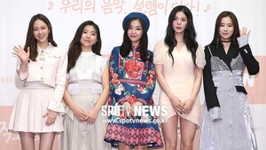[스포티비뉴스=서울, 곽혜미 기자] tvN ‘작업실’ 제작 발표회가 29일 오후 서울 마포구 상암동 스탠포드호텔에서 열렸다. 모모랜드 주이가 입장하고 있다. 가수 고성민, 스텔라장, 아이디, 장재인, 차희(왼쪽부터)가 포즈를 취하고 있다.