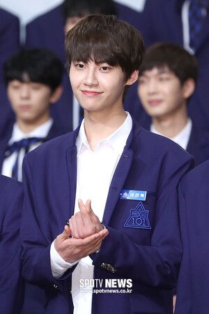 [스포티비뉴스=서울, 곽혜미 기자] Mnet '프로듀스 X 101' 제작 발표회가 30일 오후 서울 영등포구 여의도동 63컨벤션센터에서 열렸다. 연습생 이진혁이 포즈를 취하고 있다.