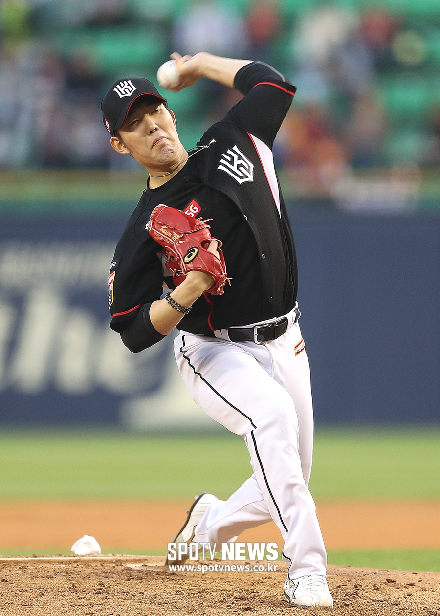 [스포티비뉴스=서울, 곽혜미 기자] 2019 신한은행 MY CAR KBO리그 LG 트윈스와 KT 위즈의 경기가 30일 오후 서울 잠실야구장에서 열렸다. KT 선발 금민철이 역투하고 있다.