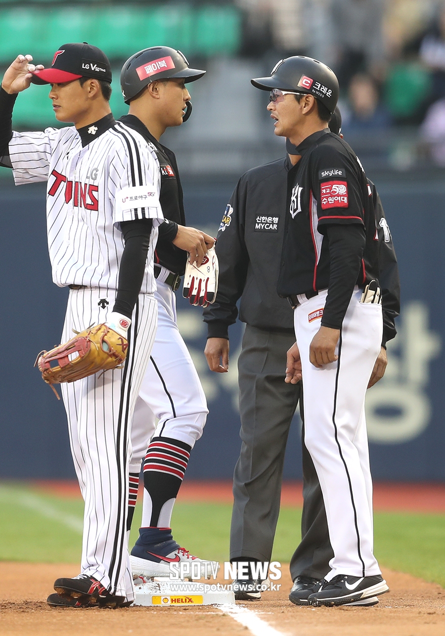 1회 첫 타석에서 볼넷을 골라 선취점의 발판을 놓은 황재균은 3회 두 번째 타석을 마치고 3회말 수비에서 1루수 문상철과 교체됐다. 1루수로 선발 출전한 오태곤이 3루로 자리를 옮겼다.