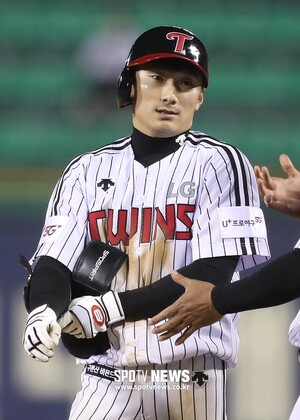 [스포티비뉴스=서울, 곽혜미 기자] 2019 신한은행 MY CAR KBO리그 LG 트윈스와 KT 위즈의 경기가 30일 오후 서울 잠실야구장에서 열렸다. 연장 11회말 1사 LG 신민재가 안타를 만든 후 숨을 고르고 있다.