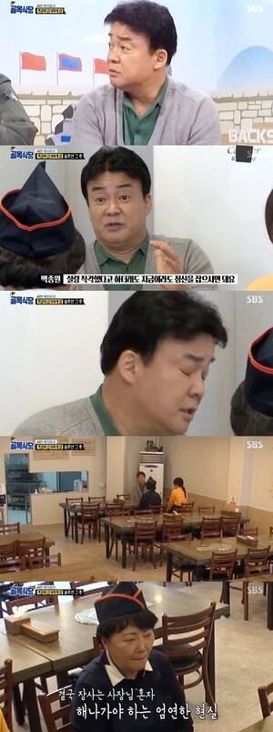 1일 방송된 SBS 예능프로그램 '백종원의 골목식당'에서는 백종원이 쪽갈비 김치찌개집 사장에게 일침을 놓는 모습이 그려졌다.