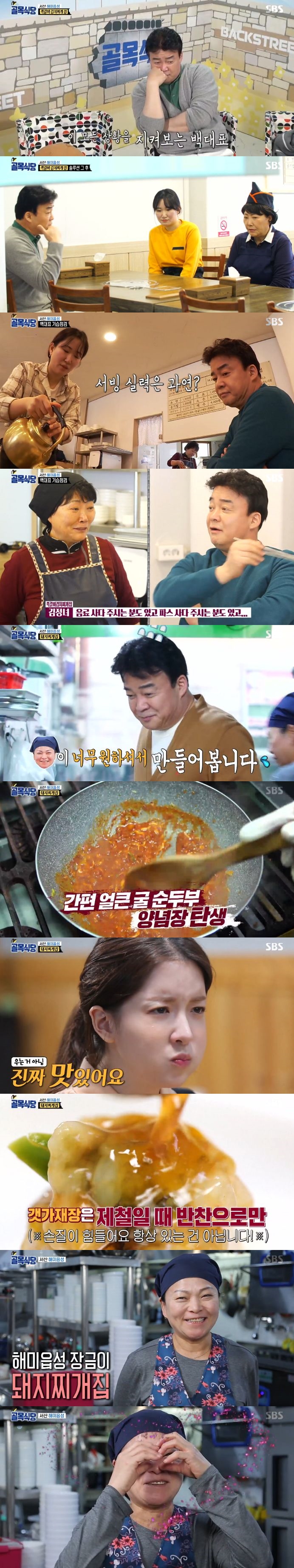 결국 백종원은 "한 번도 이렇게 돈을 써서 공사를 해준 적이 없다. 우리끼리 회의를 한 거다. 식당을 하시면 안 될 정도로 솜씨가 없다. 그래서 억지로 메뉴를 만들어놓은 거다. 그런데 보람이라는 게 있어야 할 거 아니냐"라며 독설을 이어갔다. 사장은 고개를 들지 못했다.
