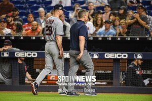 클루버는 2일(이하 한국 시간) 미국 플로리다주 마이애미 말린스파크에서 열린 마이애미 말린스와 경기에서 5회 2사 후 브라이언 앤더슨의 직선타구에 팔을 맞았다.
