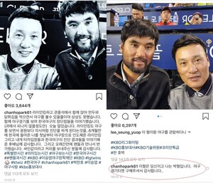 [스포티비뉴스=정유진 기자] 레전드 ‘코리안 특급’과 ‘라이언킹’이 만났다. 야구선수 출신 박찬호와 이승엽이 함께 야구 경기를 지켜본 소감을 각자 자신의 인스타그램에 게재한 것. 그러나 두 사람의 '스타일'이 극명하게 달라 야구팬들의 흥미를 끌었다.