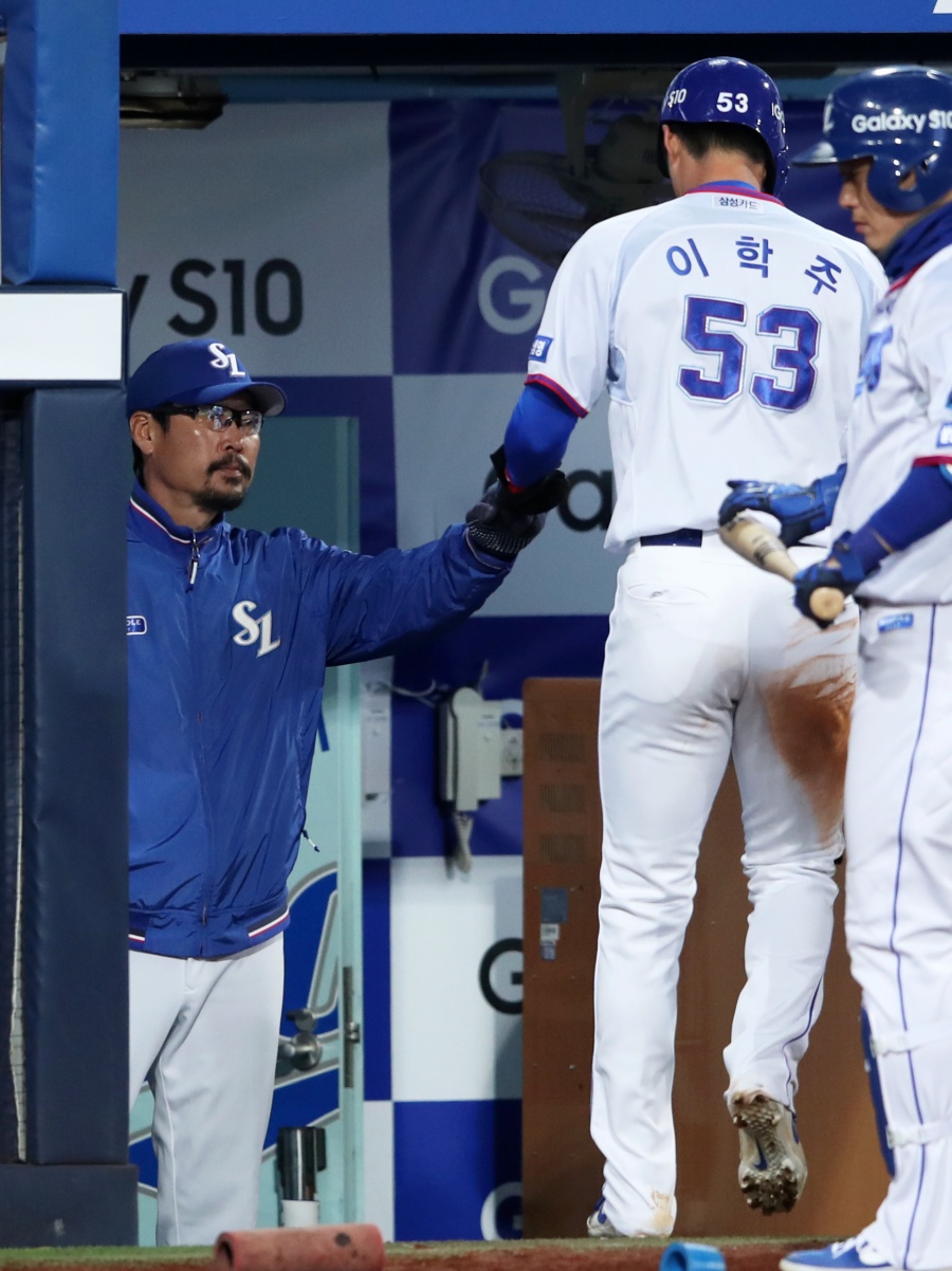 2일 KIA와 경기 전 김 감독은 선발 라인업을 발표하면서 이학주 선발 제외 이유를 대진이라고 설명했다. 삼성은 1일과 2일 왼손 투수 김기훈과 양현종을 상대했다. 왼손 타자 이학주 대신 타격감이 좋은 박계범을 넣었다.