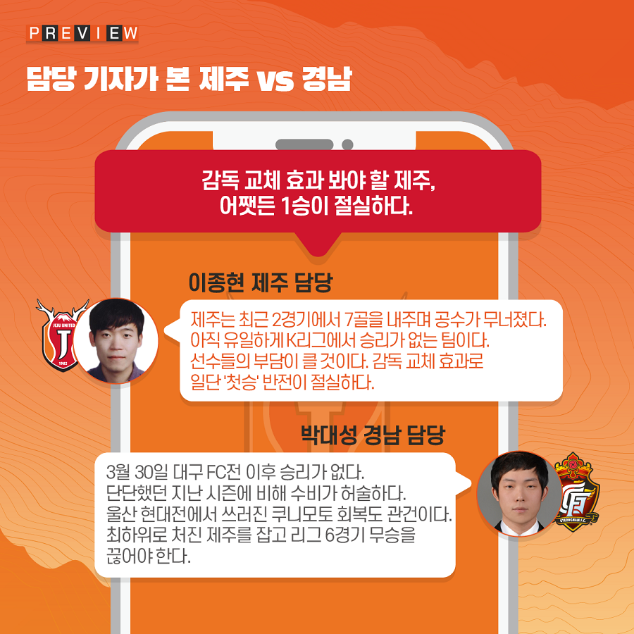 감독 교체 효과와 최근 좋지 않은 경남의 흐름은 제주는 확실하게 이용해야 한다.