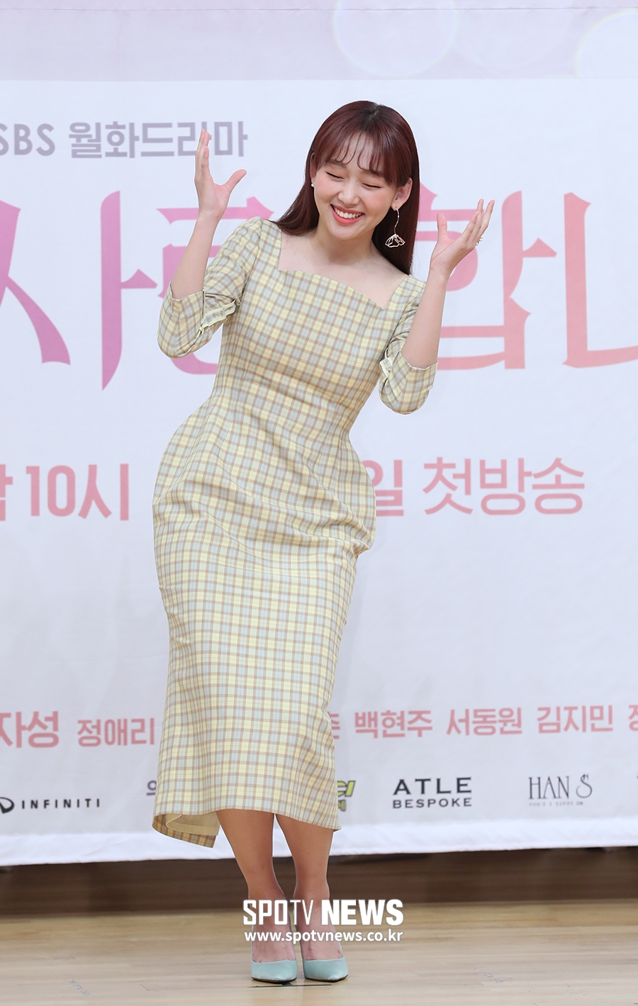 [스포티비뉴스=서울, 한희재 기자] SBS 드라마 ‘초면에 사랑합니다’ 제작발표회가 3일 오전 서울 양천구 목동 SBS에서 열렸다. 배우 진기주가 진행자의 요청을 받아 개성있는 인사 포즈를 취하고 있다.