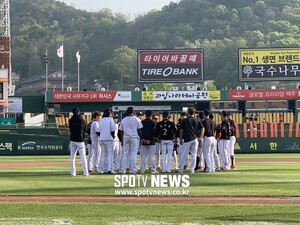 kt 선수단은 3일 대전한화생명이글스파크에서 열리는 '2019 신한은행 MYCAR KBO리그' 한화 이글스전을 앞두고 야구장에 늦게 출근했다. 평소보다 1시간 정도 늦은 오후 4시 50분에 야구장에 나왔고 타격 및 수비 훈련도 일부 선수만 했다.