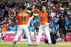 현재 아니 메이저리그 역사상 코디 벨린저(LA 다저스)보다 뜨겁게 시즌을 시작한 선수가 있을까. 벨린저가 올 시즌 개막 후 보여준 활약은 역대급이다. 벨린저는 다저스가 33경기를 마친 4일(한국시간) 현재 타율 0.415(118타수 49안타), 14홈런, 38타점을 기록하며 타격 모든 부문 1위를 달리고 있다. 벨린저는 지난 두 시즌 월드시리즈에 진출하고도 우승을 하지 못했으나 아버지 클레이 벨린저는 월드시리즈 우승 반지가 있다.