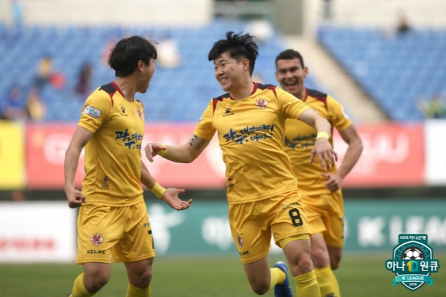 광주는 4일 광주월월드컵경기장에서 열린 '하나원큐 K리그2 2019' 10라운드 전남 드래곤즈와 '옐로 더비'에서 2-0으로 승리했다.