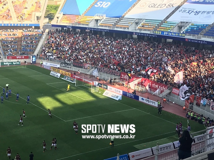 박주영 동점 골 직후 휘슬이 울렸다. 수원이 선제골을 넣고, PK까지 막았는데 마지막 고비를 넘지 못했다. 수원 선수단은 그라운드에 쓰러졌고, 서울 선수단이 환호했다. 수호신의 함성이 빅버드를 크게 울렸다.