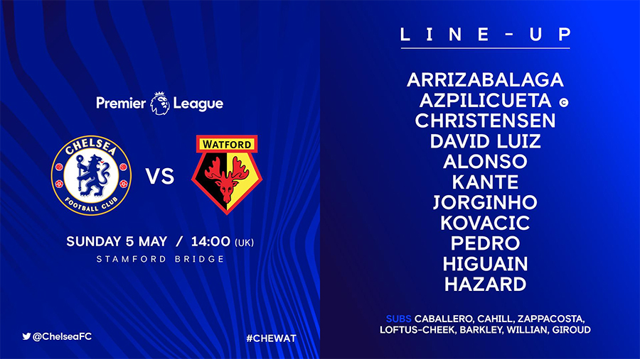 첼시는 5일 오후 10시(한국시간) 영국 스탬포드 브릿지에서 2018-19시즌 잉글랜드 프리미어리그 37라운드 왓퍼드전을 치른다. 토트넘이 본머스에 0-1로 패배해, 왓퍼드전에서 승리한다면 다음 시즌 챔피언스리그 진출에 파란불을 켠다.