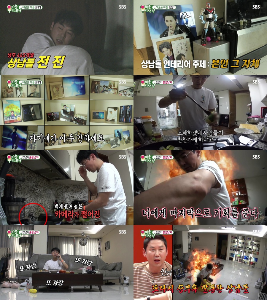 한편, 이날은 ‘미운 남의 새끼’로 21년차 최장수 아이돌 신화의 멤버인 전진의 일상과 집이 첫 공개돼 시선을 사로잡았다. 반려견 2마리를 키우며 깨끗하게 정돈된 집이 공개되자 어머니들은 “깔끔하게 잘 해놓고 산다”며 폭풍 칭찬을 아끼지 않았다. 책장에 온통 자기 사진으로 도배를 한 모습에 서장훈은 “자기애가 아주 강하네요”라고 언급하기도 했다.