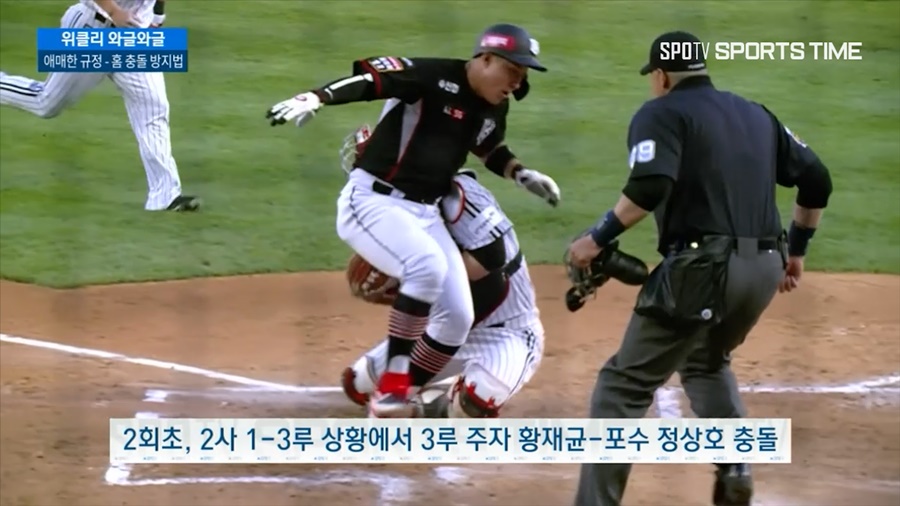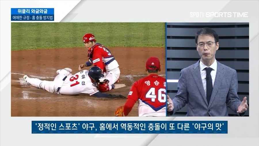●D감독=홈충돌 방지법은 부상 방지를 위해 도입한 것 아니냐. 정상호의 무릎이 들어가는 장면은 옛날에 포수에게 가르치는 방식이었다. 그 동작을 안 하기 위해 만든 규정 아닌가. 작년엔 완전히 주자 아웃타이밍에도 그런 상황이면 포수의 방해로 보고 세이프를 줬던 것으로 기억한다.