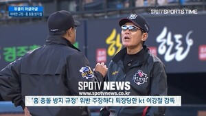 [스포티비뉴스=이재국 기자] 올 시즌 감독 퇴장은 두 차례 발생했다. 롯데 양상문 감독과 kt 이강철 감독이 1·2호 퇴장을 당했다. 모두 홈충돌 상황에서 비디오판독 결과를 놓고 수긍하지 못하고 항의를 하다 퇴장 조치를 받은 것이었다. 한 주간의 사건사고와 핫이슈를 정리하는 [스포츠타임 와글와글]에서는 지난 2일 잠실에서 kt 이강철 감독이 퇴장당한 상황을 살펴봤다. 관점에 따라 다른 해석이 가능한 애매한 홈충돌 방지법. 야구계는 어떻게 바라보고 있을까. 앞으로 KBO리그는 어떻게 가야하는 것일까. 스포티비뉴스는 10개 구단 감독에게 긴급 설문조사도 실시했다. 현장을 지휘하는 감독들의 생각은 어떨까.