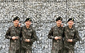 사진 속에는 군복무에도 여전한 비주얼을 자랑하는 두 사람이 군복을 차려입고 늠름하게 포즈를 취하고 있다. 고무신 신은 팬클럽 멜로디도 이들의 근황에 반가움을 금지 못 했다.