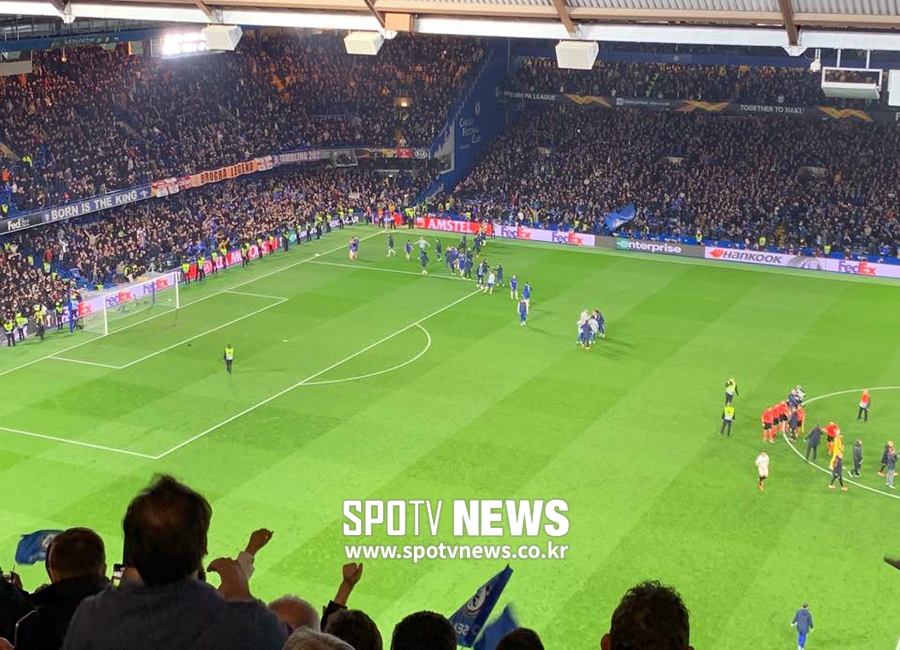 하지만 전반전이 끝날때 까지 프랑크푸르트 팬들은 쉬지 않았다. 경기를 지고 있는 상황에서도 끊임없이 박수를 치며 자신들의 팀 선수들에게 응원을 보냈다. 오히려 이 순간만큼은 홈팀 첼시 팬들의 열기가 부족하다고 느낄 정도였다. 첼시 팬들은 위협적인 장면에서는 일순간 환호와 기대의 목소리가 크게 터져 나왔지만 대체적으로 차분하게 경기를 지켜봤다.