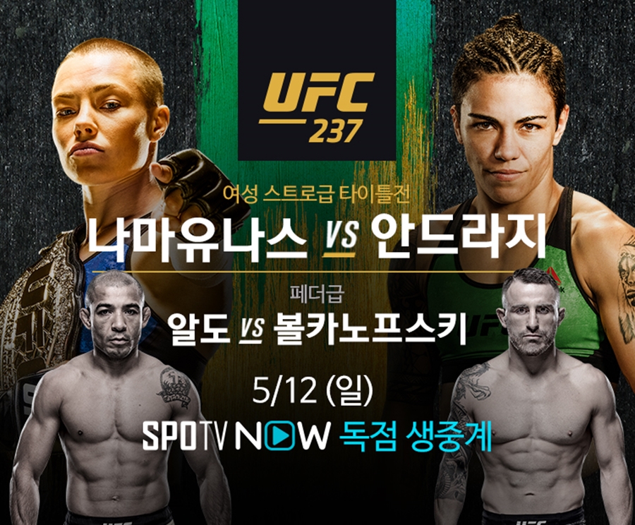 두 선수의 맞대결이 펼쳐지는 UFC 237의 메인카드 경기는 스포티비 온(SPOTV ON), 스포티비 나우(SPOTV NOW)에서 독점 생중계된다. 앞서 열리는 언더카드 경기는 스포티비(SPOTV)에서도 시청 가능하다.