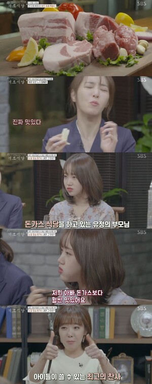 이날 방송에 출연한 최유정은 전국에 약 40마리 밖에 없는 제주재래흑돼지를 기반으로 한, 30년 경력의 제빵사가 만든 돈가스를 먹었다. 돈가스 집 딸로 유명한 최유정은 "아빠가 만든 돈가스보다 맛있다"고 솔직한 감탄사를 뱉었고, 출연진들은 "그래도 그런 말은"이라며 당황해 했다.