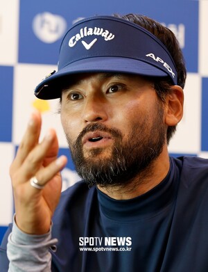 [스포티비뉴스=인천, 한희재 기자] 제2회 휴온스 엘라비에 셀러브리티 프로암 골프 대회가 11일 인천 드림파크컨트리클럽에서 열렸다. 라운딩을 박찬호가 한조를 이룬 김영웅과 기자회견에 참석해 인터뷰를 하고 있다.